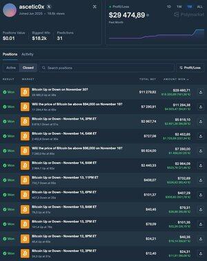 🔥 ÚLTIMA VEZ: Um trader da Polymarket transformou $12 em quase $30.000 ao prever corretamente 11 movimentos consecutivos de curto prazo em BTC.