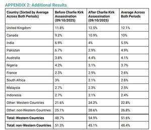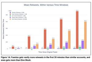 As postagens mais virais de Fuentes são fortemente retweetadas por contas estrangeiras, incluindo Índia, Paquistão, Nigéria, Malásia e Indonésia.