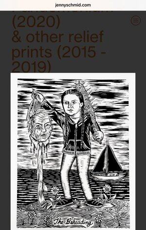Conheça Jenny Schmid, professora da @umncla. Essa é a "arte" dela. Trump sendo decapitado.