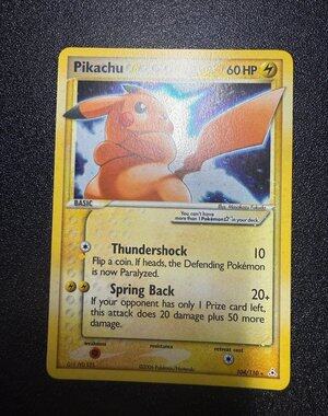 Acabei de pegar o cartão Pikachu mais caro do Pokémon, novinho em folha, com um redemoinho no canto inferior direito 🤤