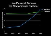 Em 2019, o pickleball era metade tão popular quanto o badminton. Em 2024, era mais popular que o beisebol.