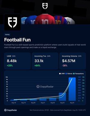 Depois de atingir um ATH ontem, a atividade continua forte com 8.48k UAW e $4.57M em volume nas últimas 24h. Este jogo de previsão desportiva baseado em habilidades está rapidamente a tornar-se um a ter em conta 📊