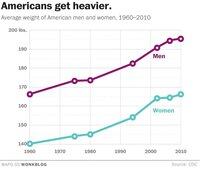 Ambos os sexos ficaram muito mais gordos, mas as mulheres hoje pesam significativamente mais do que os homens na década de 1960, em estruturas menores, e são muito mais vocalmente de esquerda hoje.