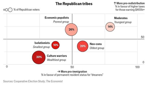 Nunca teria adivinhado em um milhão de anos que o grupo dos guerreiros da cultura também era o mais rico - teria assumido a priori que o grupo mais rico seria o dos neoconservadores. (Fonte: The Economist)