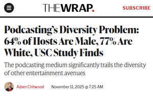 Qualquer pessoa pode começar um podcast. Qualquer um. O dispositivo que você está usando para ler isto é tudo o que você precisa para começar o seu próprio. E acontece que, mesmo com toda a censura, astroturfing e reclamações em contrário, a maioria das pessoas acha que os caras brancos são os únicos que valem a pena ouvir.