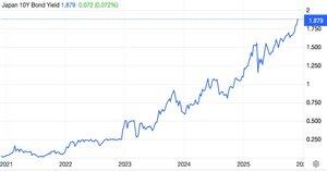 Um fator que está a desestabilizar o carry trade em USTs é o mercado de obrigações japonês. Veja o JGB de 1 ano: