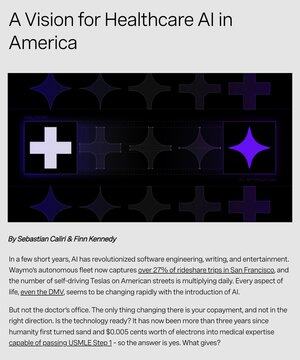 A partir dessas conversas, sintetizei um conjunto de reformas políticas a nível federal e estadual que não só legalizarão a IA na saúde, mas também atrairão recursos para o setor e farão com que os melhores inovadores se concentrem no que é um problema existencial para os Estados Unidos.