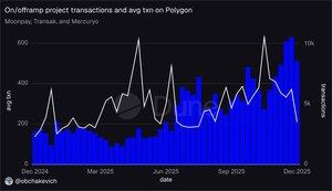 O tamanho médio das transações em projetos de on/offramp na @0xPolygon aumentou de →$170 no início do ano para mais de →$600 no final, em paralelo a um aumento na atividade dos usuários (*com volatilidade moderada).