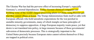 O documento inclui algumas críticas muito contundentes sobre a política energética e industrial da Alemanha.