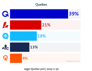 O PQ soberanista está a subir nas sondagens -- quase a 50% entre os francófonos.
