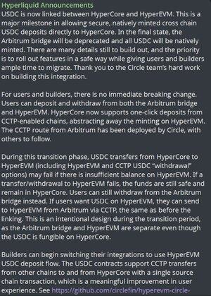 Isto significa que a ponte Arbitrum será gradualmente descontinuada em favor do USDC nativo sendo cunhado no HyperEVM.
