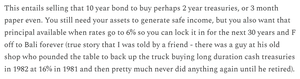 Imagine que é 1981 e você comprou obrigações a 30 anos, garantindo um retorno de 16% sem risco todos os anos até se aposentar.