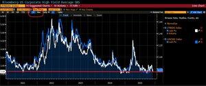 Spread-ul (alb) al obligațiunilor de calitate junk este aproape la nivelul de 21 de ani și la sfârșitul lui 24, iar cu cât spread-ul este mai mic, cu atât piața este mai optimistă, așa că, în acest ciclu, este o alegere foarte rezonabilă să reduci unele BETA