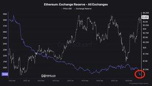 Oferta Ethereum pe burse tocmai a atins 18,8 milioane ETH – cea mai scăzută din ultimii ani. 📉