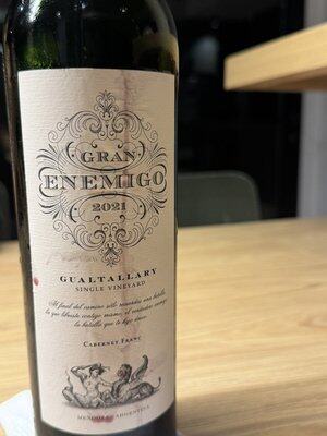 Vinul se numește Gran Enemigo, un vin numit după ideea că singurul tău dușman real ești tu însuți. Creat de Vigil și Catena, puțin genial și totodată foarte dramatic. Cab Franc din Gualtallary, născut din lupte interioare și dragoste tăcută. Se simte oarecum poetic să bei ceva ce ține atât romantismul, cât și auto-reflecția în aceeași sticlă. Diseară ies în oraș.