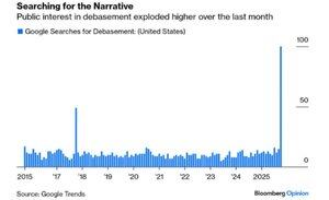 🚨 ATENȚIE: Căutările pe Google pentru "devalorizare" a dolarului au atins un maxim istoric în acest trimestru, pe măsură ce interesul public pentru deprecierea monedei explodează.