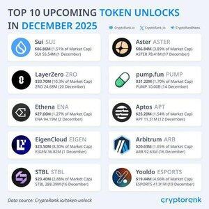 СРОЧНО: 🚨🚨 В декабре будет разблокировано $1.8B в токенах, включая $SUI, $ASTER, $ZRO, $PUMP, $ENA, $APT, $EIGEN, $ARB, $STBL и $ESPORTS.