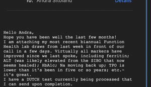 60 дней со мной: SIBO ушел, наконец, усваивает свои питательные вещества, уровень сахара в крови стабилизировался, электролиты и здоровье надпочечников улучшились. Показатели Хашимото снизились до самых низких за многие годы. 🥰