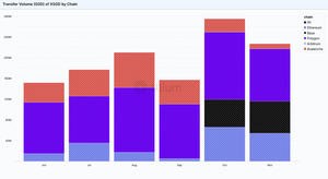 3. USDC доминирует в переводах, но мы также отслеживаем XSGD — первую стабильную монету, номинированную в SGD в Сингапуре. Она недавно превысила $200M в объеме переводов за месяц. (восторженно ждем, когда эта цифра вырастет!)