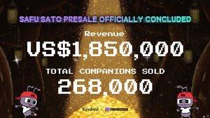 SATO-компаньон от Kindred(@Kindred_AI), предпродажа IP первой серии достигла продаж в 1,85 миллиона долларов США / 268 тысяч единиц менее чем за неделю.