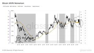 Ett nyligen avgjort kors i Bitcoin $BTC MVRV Momentum-indikatorn signalerar en makromomentumvändning från positiv till negativ.