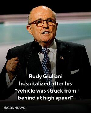 Rudy Giuliani fördes till sjukhus med flera brutna ben efter att hans fordon "blev påkört bakifrån i hög hastighet" i New Hampshire, sade hans talesperson på söndagen.
