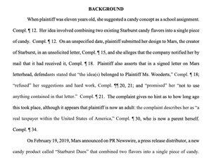 Bir federal yargıç, bir kadının davasını reddetti; kadının 11 yaşındayken Starburst'un ana şirketine mektup yazarak iki farklı "Duo" kavramını icat ettiğini iddia etti ... ancak şirket onlarca yıl sonra onu çaldı.