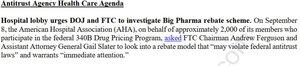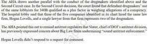 Sağlık hizmetleri antitröst dünyasından çılgın gelişme: Amerikan Hastaneler Birliği, 5 ilaç üreticisini 340B indirimlerine erişimi sınırlamak için komplo kurmakla suçluyor. Dahası, AHA bunun DC'deki en iyi Büyük Hukuk firması Hogan Lovells aracılığıyla kolaylaştırıldığını ima ediyor.