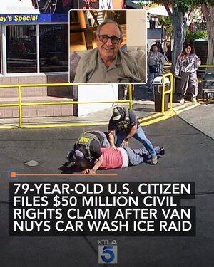 79 yaşındaki Van Nuys oto yıkama sahibi, ABD vatandaşı olduğunu doğrulamasına rağmen, federal göçmenlik görevlilerinin bir baskın sırasında kaburgalarının kırılmasına, kafa travmasına ve diğer ciddi yaralanmalara neden olan aşırı güç kullandığını iddia ederek 50 milyon dolarlık bir sivil haklar davası açtı. Hikayenin tamamı: