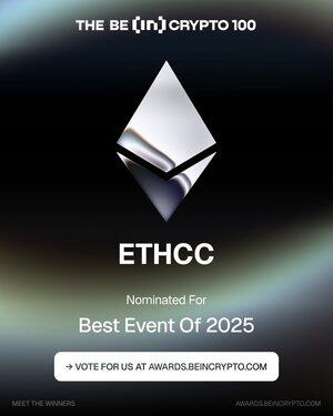 EthCC, @beincrypto 100 Ödülleri 🥳 kapsamında Yılın En İyi Etkinliği için kısa listeye alınmıştır