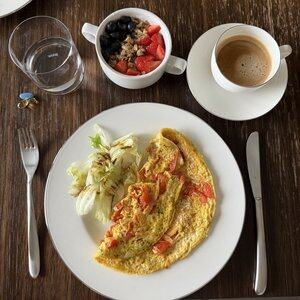 - parmigiana + yeşilliklerle sebzeli 2 yumurtalı omlet