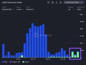 Son 3 günde, @solana tüm x402 dolarlık hacmin %80'inden fazlasını çekti.
