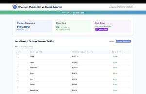 Ethereum stabilcoin piyasa değerini tüm ülkelerin döviz rezervleriyle karşılaştırın.
