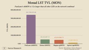 LST'ler tarihsel olarak kazanan en çok alır pazarıdır ve @0xFastLane, Monad'a karşı erken liderliğiyle öne çıkıyor. Protokol şu anda dolaşımdaki tüm $MON arzının %3,16'sını oluşturuyor. Bu LST, shMON artık %76 pazar payına sahip, bu da diğer tüm LST'lerin toplamından ~3 kat daha büyük yapıyor