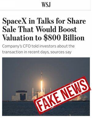 SON VERİCİ: Elon Musk, SpaceX'in son değerleme haberini eski medyanın bir başka sahte haber haberi olarak nitelendirdi.