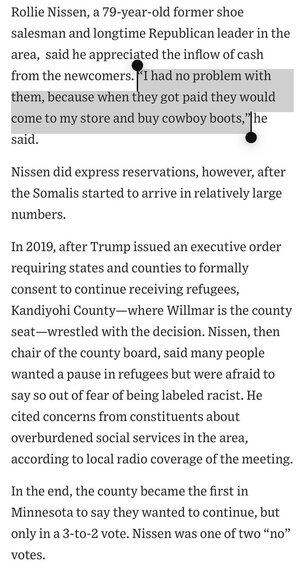 Minnesota'dan yerel Cumhuriyetçi: "Onlarla hiçbir sorunum yoktu, çünkü para aldıklarında dükkanıma gelip kovboy botları alıyorlardı."