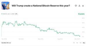 🇺🇸Kalshi yatırımcıları, Başkan Trump'ın 2025'te ulusal bir #Bitcoin rezervi oluşturma ihtimalini sadece %2 olarak belirledi.