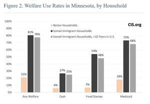 Minnesota'daki Somali göçmen hanelerin %81'i sosyal yardım almaktadır.