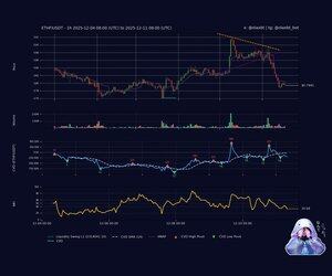 #ETHFI: Düşüş eğilimi azalıyor—Fiyat düşüş eğiliminde, CVD SMA14'ün altına düşüyor, satış baskısı yaklaşıyor. Pivotlar alçak çöker, yumuşak bir fade akıyor—bir göz at, ne mi?