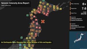 Близько 23:15 на глибині 50 км у узбережжі префектури Аоморі стався землетрус магнітудою 7,6. Максимальна інтенсивність становила 6+. Було видано попередження та рекомендації щодо цунамі. #earthquake