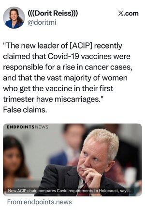 Сьогодні... 37-річний солдат мав 6 місяців до виходу на пенсію у 2021 році, коли його змусили зробити щеплення під хибним приводом, що запити на релігійне пристосування не будуть прийняті. Протягом 3 днів після вакцинації діагностували міокардит. VAERS подав — ЖОДНИХ наступних дій від CDC, FDA чи DHA... Сьогодні він проводить пенсію у відділеннях невідкладної допомоги через серцеву недостатність! Я отримую присяжні заяви... шахрайство, скоєне проти членів наших Збройних сил, буде задокументовано, і, якщо Бог дасть, некомпетентні, корумповані люди будуть притягнуті до відповідальності — шкода приголомшлива! Я не хочу чути, як ще один «лідер» плаче через бідних наркотерористів, бідних x і y. ПОДБАЙ ПРО ВІЙСЬКОВИХ, ЯКІ ДАЛИ ТОБІ МОЖЛИВІСТЬ ОТРИМАТИ СВОБОДУ І СЦЕНУ, ЩОБ УДАВАТИ СВОЄ МОРАЛЬНЕ ОБУРЕННЯ!