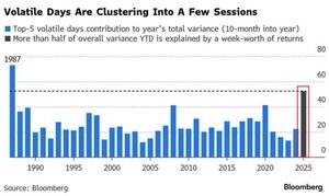Це означає, що половина всієї волатильності цього року припала лише на 5 торгових сесій, що є найвищим показником з 1987 року.