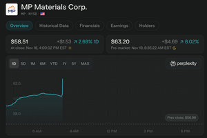 $MP Materials об'єднується з саудівською шахтаркою Maaden та Міністерством війни США для будівництва рідкоземельного заводу в Саудівській Аравії в рамках нової системи критичних мінералів між США та Саудівською Аравією.