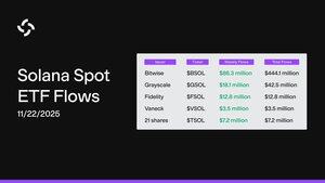 🚨ETF-ДАНІ: @Solana спотові ETF зафіксували чисті припливи на $127,9 млн за минулий тиждень, довівши сукупні припливи до $510 млн, а BSOL від Bitwise очолив рейтинг із $86,3 млн припливу, що більше, ніж усі інші ETF Solana разом узяті.