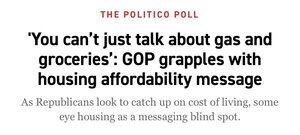 Трамп — будівельник, червоні штати кращі за «сині» за вартістю життя, а Obamacare означає недоступну медичну допомогу. Час республіканцям перейти в атаку щодо доступності, зокрема щодо охорони здоров'я та житла, з моїми думками в Politico.
