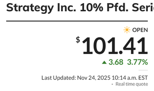 $STRF торгується вище номіналу. На мою думку, явно є попит на $MSTR префі, незважаючи на протилежні твердження. Попит на преф, здається, дещо змістився до $STRF, найякіснішої преф-пропозиції Strategy, на тлі ринкової волатильності/розпродажу.
