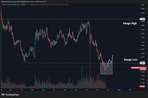 $EIGEN TradFi зустрічається з DeFi, Onchain. Cap зараз працює як EigenLayer AVS з повним зрізом + перерозподілом, що приносить реальні криптоекономічні кредитні гарантії в інституційне фінансування. Flow Traders використовує ліквідність USDC в блокчейні через Cap, ставши однією з перших публічних компаній, які отримують доступ до DeFi, захищеного EigenCloud та Ethereum. Щодо графіка. Мені потрібно побачити повторне захоплення цього діапазону низького рівня. Якщо це можливо, ми могли б підготуватися до більшого мітингу допомоги. Важливий тест попереду.