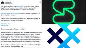 НОВИНКА: @VitalikButerin ОГОЛОШУЄ ПРО ПОЖЕРТВИ ЗАШИФРОВАНИМ МЕСЕНДЖЕРАМ @session_app Та @SimpleXChat