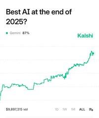 ЩОЙНО: Ймовірність того, що Google Gemini стане лідером LLM цього року, зросла до 87% за показниками трейдерів на Kalshi.