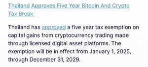 Таїланд фактично був найкращим місцем для життя для криптовалют. Нуль податків, чисті правила, і тепер ще п'ять років торгівлі без податків.